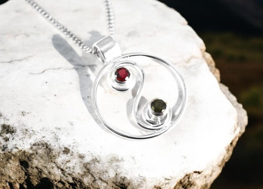 Genuine Moldavite with Natural Garnet Pendant, Moldavite from Czech Republic, 925 Sterling Silver Circle Pendant, Birthday Gift Jewelry