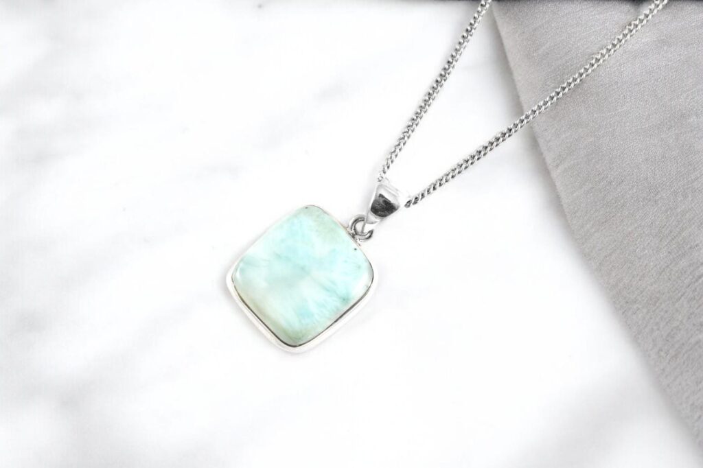 Natural Larimar Pendant, March Birthstone Pendant, 925 Sterling Silver Pendant, Cushion Shape Pendant, Gift For Mom, Blue Larimar Pendant