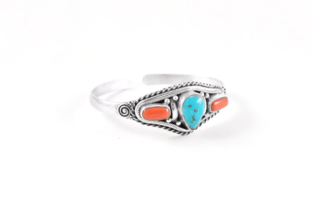 Natural Turquoise and red Coral Bracelet, Tribal Bracelet, Sterling Silver Men Bracelet, Boho Bracelet, 92.5 Sterling Silver, Christmas Gift
