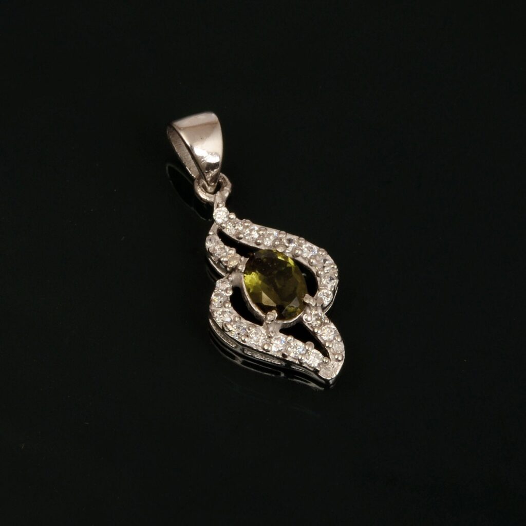 Faceted Moldavite Necklace with Cubic Zirconia, 7*5mm Authentic Moldavite Sterling Silver Pendant, Moldavite from Czech Republic