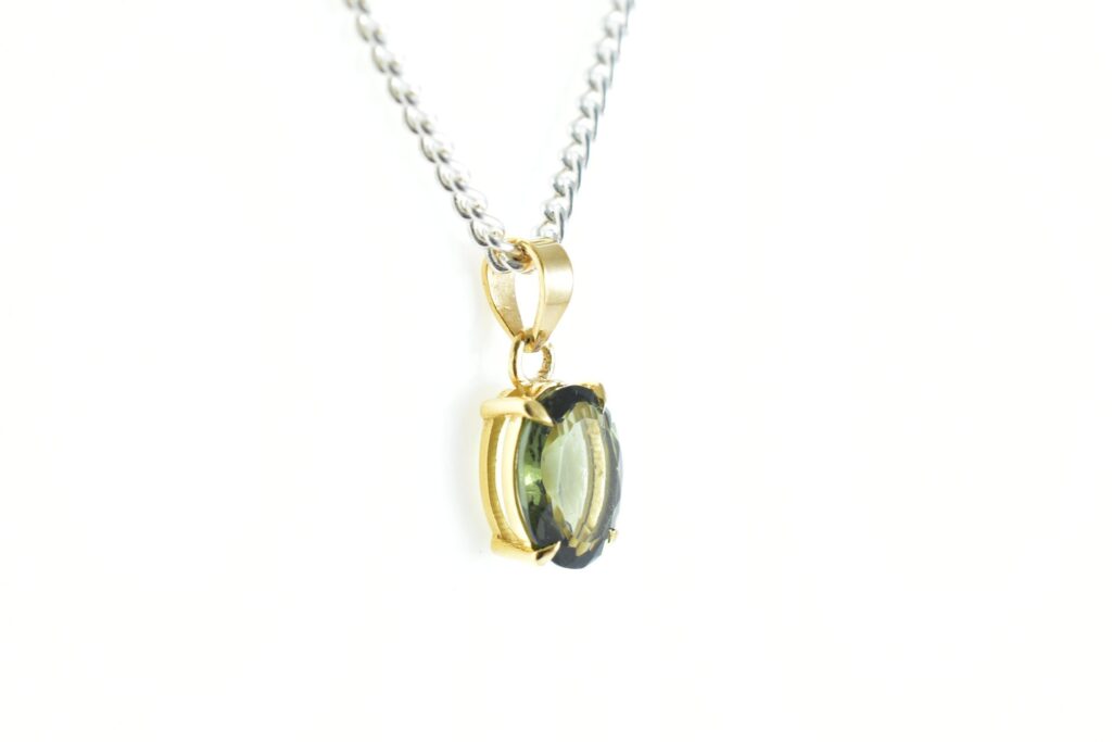 14k Faceted Moldavite Pendant, 9x7mm Oval Faceted Moldavite, Authentic Moldavite 14k Solid Gold Pendant, Dainty Pendant