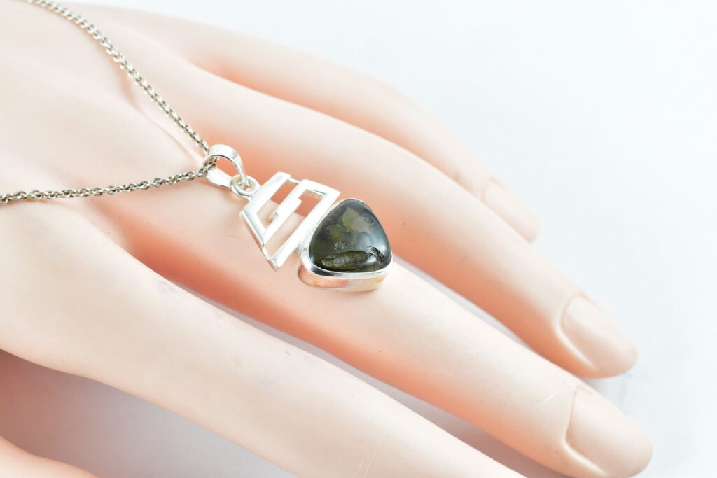 Moldavite teardrop Semi-polished Pendant, Polished Moldavite Handmade Sterling Silver Necklace, Genuine Moldavite Pendant, Christmas Gift